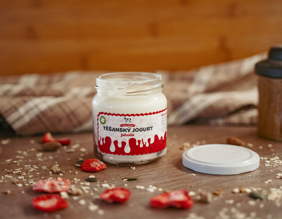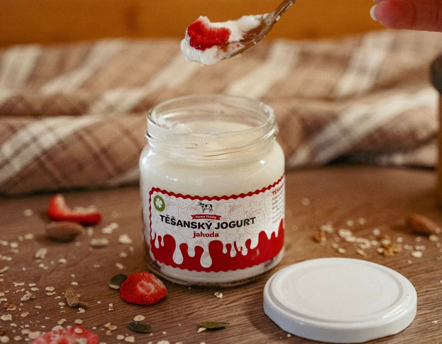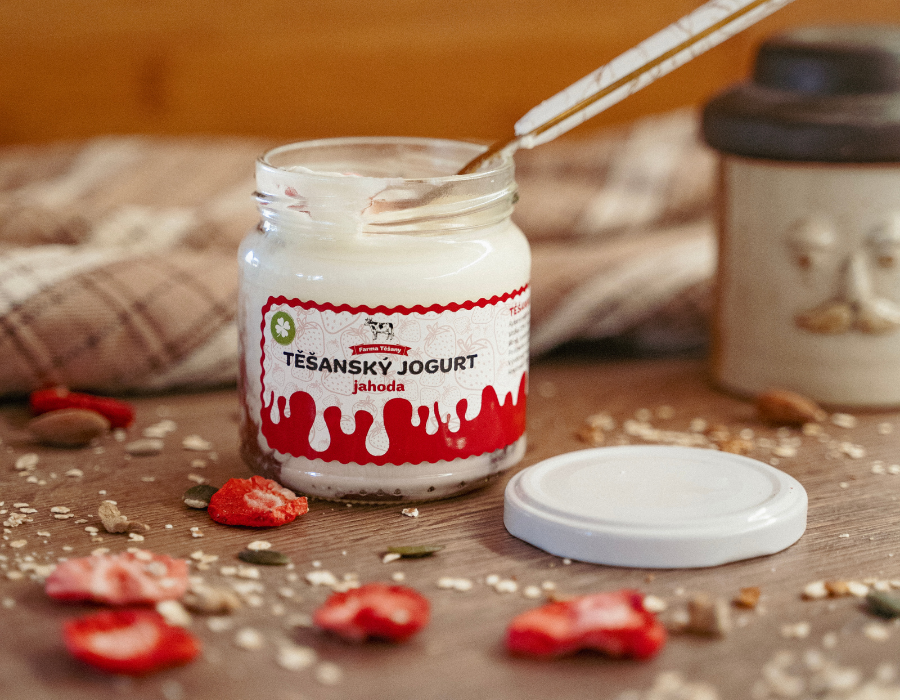 Těšanský jogurt zraje přímo ve skle, a díky tomuto přirozenému procesu si zachovává plnou, přirozenou chuť. Po otevření na vás čeká nahoře krásná smetanová vrstva, která je typická pro poctivý farmářský jogurt.